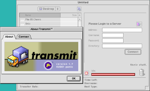 I never thought I'd write something like "cute FTP client" in my life, but here we are. But you gotta check out Transmit for your PowerPC Mac computers. Look at that icon, that interface. That's adorable. You're telling me a little truck is gonna carry my files over the information superhighway using FTP? Delicious.