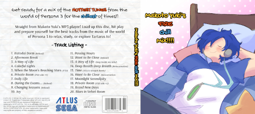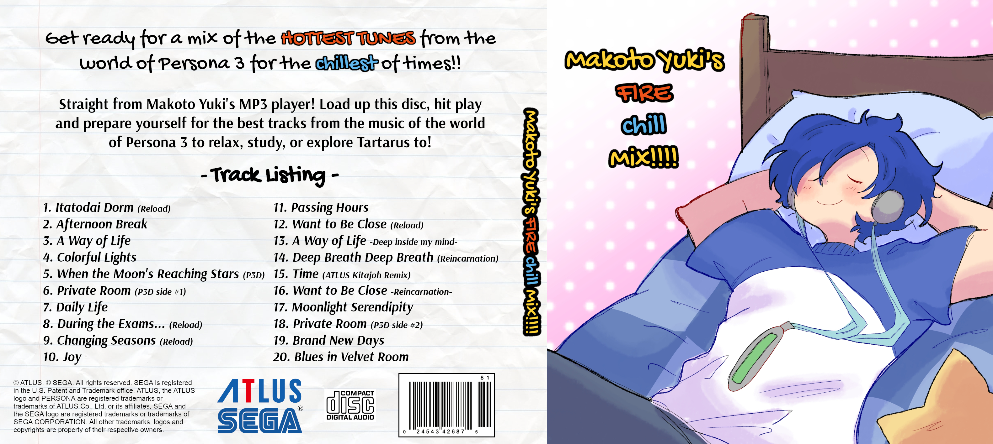 Despite my mixed feelings on some of the writing of Persona 3, its music is unmatched. I think I've listened to mixes like this on repeat for hours and hours and hours while doing chores, writing or sitting around. I made a mix to fit on a CD to keep in my car's CD player so that if there's nothing on the radio, don't want to mess around with finding music on my phone or whatever, a great playlist of music was only a car-dashboard-button-push away. Now YOU can listen to this mix too!!